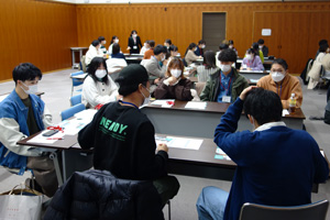 セミナーには、広島大学ふるさと枠63名及び岡山大学地域枠広島県コース3名の 66名が参加し、所属大学の異なる医学生が一堂に会し、地域医療をテーマにした講演やグループワークを通じて、将来、広島県の地域医療を担う学生同士の一体感醸成と地域医療への理解を深めました。