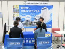多くの医学生の方々に広島県ブースを訪問していただき、参加した県内臨床研修病院の指導医、研修医の先生方は熱心に病院や研修内容等について説明されていました。